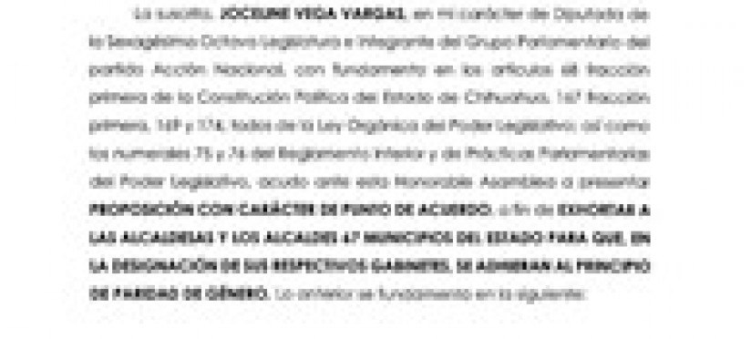 Se exhorta a las Alcaldesas y Alcaldes de los 67 municipios del Estado para que, en la designación de sus respectivos gabinetes, se adhieran al principio de paridad de género: https://lc.cx/9oQLnC