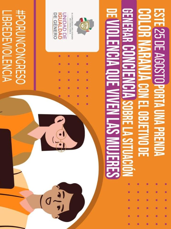 El lunes es Día Naranja, no olvides portar un prenda color naranja con el objetivo de visibilizar que rechazamos la violencia en contra de las mujeres, niñas y adolescentes.