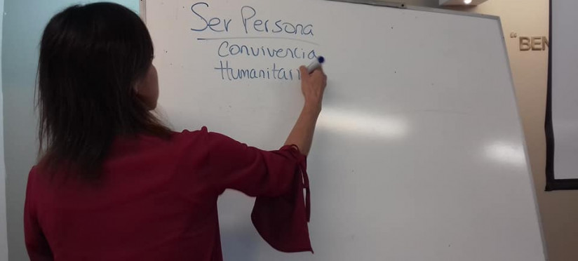 La Unidad de Igualdad de Género impartiendo la conferencia: La Persona Humana y su Dignidad a cargo de la Licenciada Fátima Aguirre encargada del Área de Capacitación y Relaciones Públicas de la Unidad de Género.