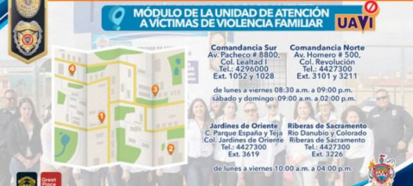 Chihuahua.- El Gobierno Municipal, a través de la Dirección de Seguridad Pública exhorta a las personas que se encuentren en una situación de vulnerabilidad derivada de algún tipo de violencia a acercarse a alguno de los cuatro módulos de la Unidad de Atención a la Violencia Familiar (UAVI), con el fin de evitar que el nivel escale a situaciones de mayor agresividad, así como para procurar la búsqueda de soluciones permanentes para tratar de erradicarla.