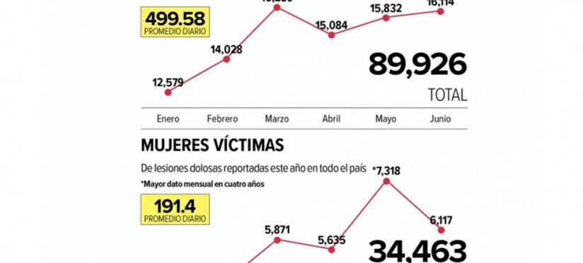 Entre enero y junio de este año se recibieron 89 mil 926 llamadas de emergencia para informar sobre mujeres violentadas, indica el reporte Información sobre violencia contra las mujeres, que cada mes compila registros actualizados del Secretariado Ejecutivo del Sistema Nacional de Seguridad Pública (SESNSP).
