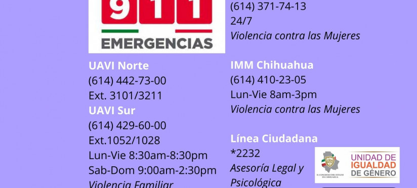 Sí sufres violencia, no estás sola. Ponemos a tu disposición los siguientes números telefónicos.