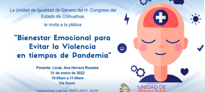 La Unidad de Igualdad de Género te invita a la plática de "Bienestar Emocional para Evitar la Violencia en tiempos de Pandemia", de manera virtual por medio de la plataforma Zoom, la cual haremos llegar conforme al registro.