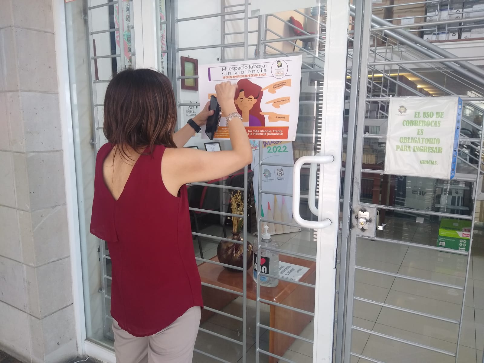 Dando continuidad con la Campaña Mi Espacio Laboral sin Violencia el día de ayer se concluyó con la colocación de un poster informativo, en el área de Órgano Interno de Control, en la entrada a las áreas de Biblioteca Legislativa y Archivo, así como en las áreas de estacionamiento.