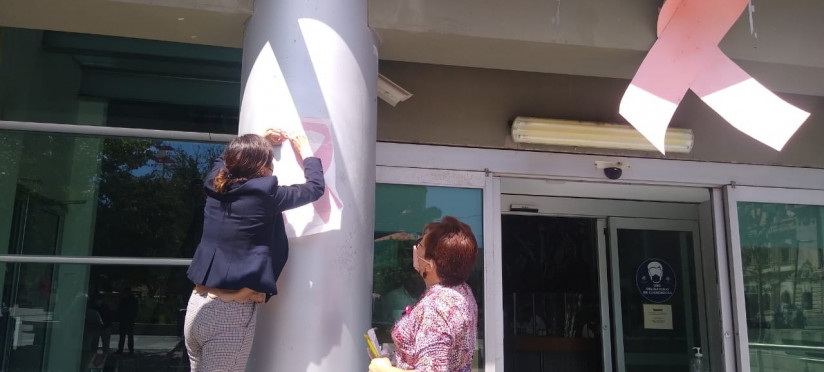 Dentro del marco de la Conmemoración del Día Internacional de Lucha Contra el Cáncer de Mama, colocamos lazos rosas en la entrada del Recinto Legislativo con el objetivo de concientizar sobre el cáncer de mama.