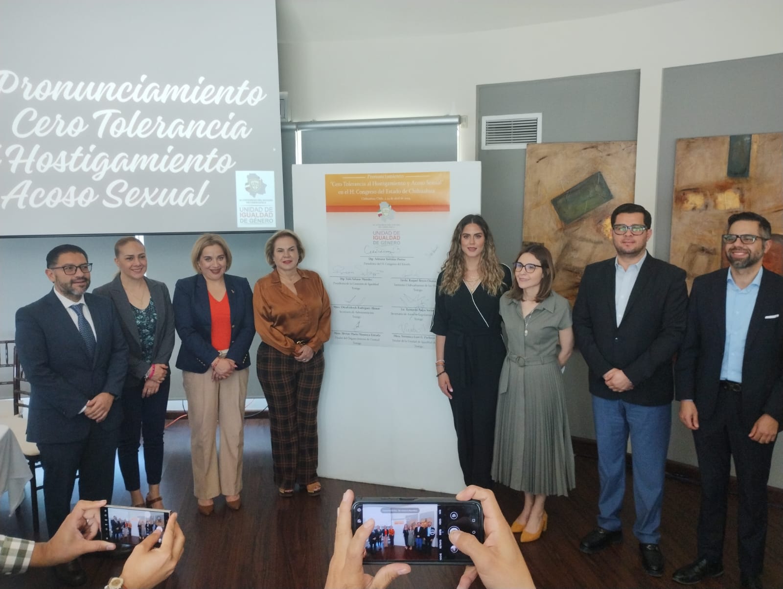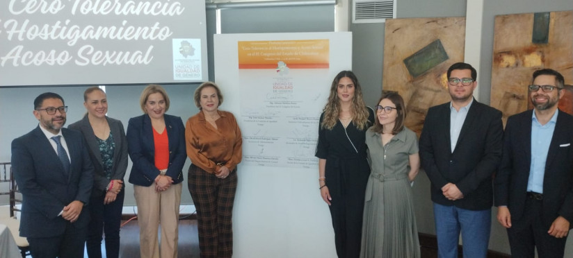 Hoy se llevó a cabo la firma del Pronunciamiento de "Cero Tolerancia al Hostigamiento y Acoso Sexual" al interior del H. Congreso del Estado.