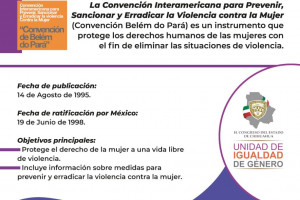¿Sabías qué...? La Convención Belém do Pará es el instrumento que protege los derechos humanos de las mujeres con el fin de eliminar las situaciones de violencia.