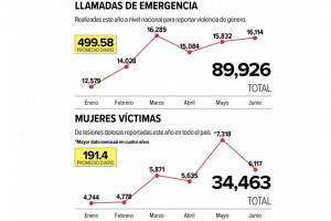 Entre enero y junio de este año se recibieron 89 mil 926 llamadas de emergencia para informar sobre mujeres violentadas, indica el reporte Información sobre violencia contra las mujeres, que cada mes compila registros actualizados del Secretariado Ejecutivo del Sistema Nacional de Seguridad Pública (SESNSP).