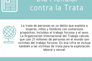 La trata de personas es un delito que explota a mujeres, niños y hombres con numerosos propósitos, incluídos el trabajo forzoso y el sexo. La Organización Internacional del Trabajo calcula que casi 21 millones de personas en el mundo son víctimas del trabajo forzoso. En esa cifra se incluye también a las víctimas de trata para la explotación laboral y sexual. Si bien se desconoce cuántas de estas fueron objeto de trata, la cifra implica que en la actualidad hay millones de víctimas en el mundo. Todos los países están afectados por la trata, ya sea como país de origen, tránsito o destino de las víctimas. La esclavitud, tanto en su forma moderna como en la antigua, no es sólo una vergüenza, sino que es «la execrable suma de todas las villanías», como la definió el abolicionista John Wesley, y no tiene cabida en nuestro mundo. «Asiste y protege a las víctimas de la trata»