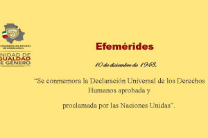 “Se conmemora la Declaración Universal de los Derechos Humanos aprobada y proclamada por las Naciones Unidas”.