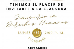 El día de hoy, dentro del marco de la Conmemoración del Día Internacional de la Eliminación de la Violencia contra las Mujeres, se llevo a cabo la Clausura del Seminario en Derechos Humanos, en su segunda edición, ofrecido por la Comisión Estatal de los Derechos Humanos. Donde se les otorgo a cada participante una constancia por haber concluido de manera satisfactoria. Agradecemos a todas y todos los acompañantes, así como a la Licda. Nancy Gutiérrez Sáenz, titular de capacitación, promoción y difusión de la CEDH. Les damos gracias de igual forma por su asistencia y sus palabras a la Mtra. Verónica L. G. Pacheco Avalos, titular de la Unidad de Igualdad de Género; al Mtro. Otto Rodríguez Alonso, secretario de administración; a la Directoria del Instituto Chihuahuense de las Mujeres, la Licda. Raquel Bravo Osuna; al Presidente de la CEDH, el Mtro. Néstor Manuel Armendáriz Loya; y en representación de la presidencia del H. Congreso del Estado, la Diputada Ivon Salazar Morales, presidenta de la Comisión de Igualdad. Las personas que integramos la Unidad nos encontramos agradecidas con todas y cada una de las personas que hicieron que esto fuera posible. Continuemos trabajando. #PorUnCongresoLibreDeViolencia #antelaviolenciacontralasmujeresnodesvíestumirada