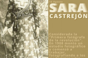 Sara Castrejón, quien abrió un estudio en la ciudad de Teloloapan, gro. En abril de 1911, cubrió la toma de Teloloapan por los maderistas, con lo que inició una trayectoria que la convertiría en la primera mexicana en fotografiar la Revolución y tal vez, una de las primeras mujeres en fotografiar un conflicto armado, a nivel mundial. Sara Castrejón tomó fotografías a los integrantes de todos los bandos revolucionarios y gobiernistas que pasaron por su ciudad natal, cubriendo cada etapa de la lucha armada durante la Revolución Mexicana. La conciencia documental de Sara cumple con su objetivo de recrear algunas tomas y vistas fundamentales de Teloloapan y sus alrededores. Sin embargo, también recurre con cierta frecuencia a la construcción de sofisticadas puestas en escena que nos remiten al diálogo de la fotografía con la pintura histórica como punto de referencia clave para comprender la lógica de lo representado. Sara Castrejón constituye un ejemplo extraordinario de una fotógrafa que desarrolló un amplio trabajo en un gremio dominado abrumadoramente por los varones y en un universo de gran violencia como lo fueron los acontecimientos armados.