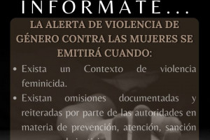 Infórmate... Artículo 24 de la Ley General de Acceso a una Vida Libre de Violencia. La Alerta de Violencia de Género contra las mujeres, se emitirá cuando: I. Exista un contexto de violencia feminicida caracterizado por el incremento persistente dehechos o delitos que involucren violaciones a los derechos a la vida, la libertad, la integridad y la seguridad de las mujeres, adolescentes y niñas en un territorio determinado; II. Existan omisiones documentadas y reiteradas por parte de las autoridades gubernamentales del cumplimiento de sus obligaciones en materia de prevención, atención, sanción, y acceso a la justicia para las mujeres, adolescentes y niñas, de conformidad con lo establecido en esta ley, y III. Exista un agravio comparado que impida el ejercicio pleno de los derechos humanos de las mujeres, adolescentes y niñas. #hagamosconsciencia #PorUnCongresoLibreDeViolencia