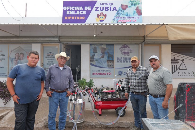 08 de septiembre de 2025. Camargo, Chih.– Como parte del Programa de Transferencia de Tecnología de la Secretaría de Desarrollo Rural del Gobierno del Estado, el diputado Arturo Zubia hizo entrega, en la oficina de enlace de Camargo, de un apoyo a David Ramos, uno de los primeros beneficiarios de este esquema, con el propósito de modernizar el sistema de ordeña que él y su familia utilizan en su producción.