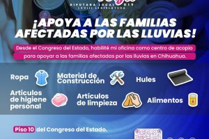 - La diputada del PAN llamó a la ciudadanía a solidarizarse y apoyar a quienes se han visto afectadas por las lluvias en la capital Chihuahua, Chih.- La diputada por el Partido Acción Nacional (PAN), Joceline ‘Joss’ Vega dio a conocer que su oficina, ubicada en el piso 10 del Congreso del...